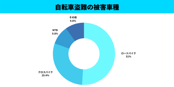 ロードバイクは盗難の被害に合いやすいと噂で聞いてた事は無いでしょうか?結論は盗まれやすいです。盗難被害にあう車種の約半数がロードバイクを占めています。(Twitterアンケートにてデータを収集しています)