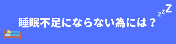睡眠不足にならない為には規則正しい生活を取って睡眠の質を高めることが一番です。一概に規則正しい生活といっても様々な観点がありますが、ざっくりいうと日中に活動して夜は休むということです。もう少し踏み込むと「光」が重要になります。人間の体内時計を調整するためには光を浴びる必要があります。逆に寝る前に光を浴びてしまうと脳が覚醒して質の高い睡眠が取れなくなってしまいます。寝る前にスマホやPCはほどほどにしておきましょう。