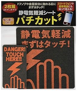 セルフのガソリンスタンドに置いていある静電気除去と同じようにドア付近に貼っておき、ドアを触る前に触る事で、帯電した電気を放電させることによりバチっと痛むことを防いでくれます。