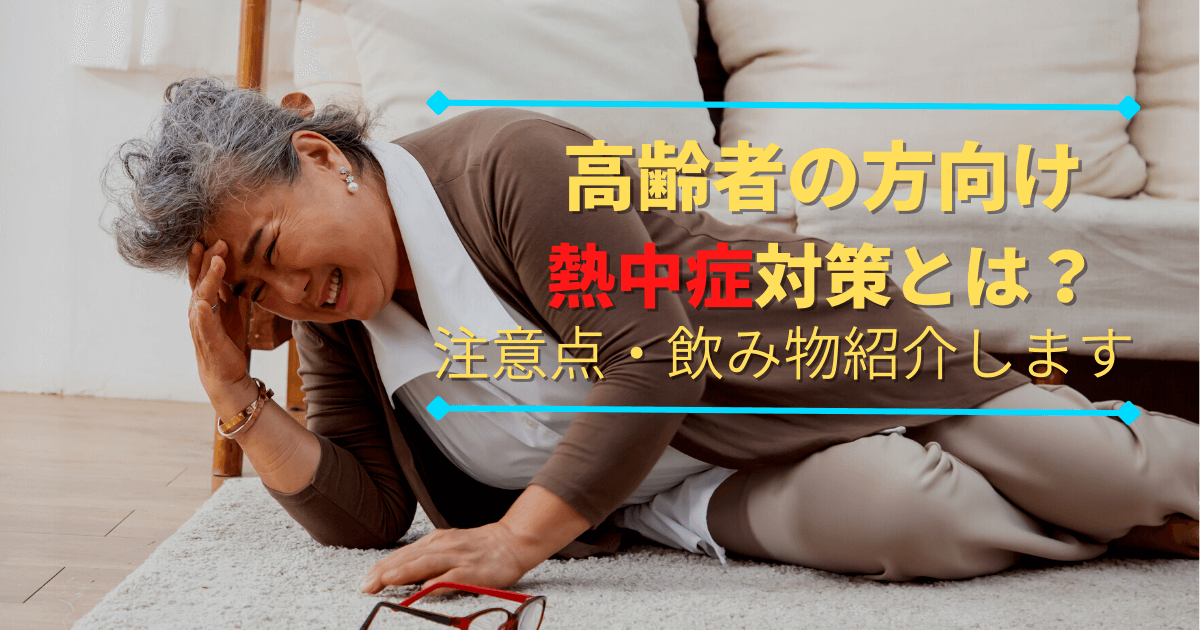 高齢者の方は成人に比べて、熱中症になるリスクが高いです。水分補給は自分の感覚ではなく、定期的に補給する習慣をつける必要がある。水分補給以外にも熱中症対策の方法はあり、熱中症対策グッズを使う、室内ではクーラーを使うです。