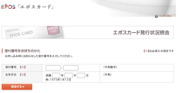 エポスカード申し込み時は、受付番号は審査状況の連絡がこない場合に「エポスカード発行状況照会」の確認で必要になります。もし、審査結果がこない場合は確認で必要になるので分かるようにしておきましょう。