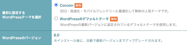 ロリポップの管理画面はお名前ドットコムと比べるとUIが悪く、どこに何があるのか一目で分かりづらいです。ただ、ワードプレスの簡単インストール機能はもちろん、初期設定時からブログを書くことができる人気テーマ「COCOON」をインストールできるのでブログを始めたい方にはおすすめ。