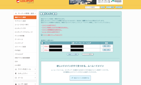 ロリポップは管理画面が古い